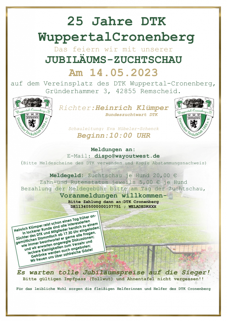14mai10:00Besonders MarkiertJubiläums Zuchtschau ⬅25 Jahre DTK